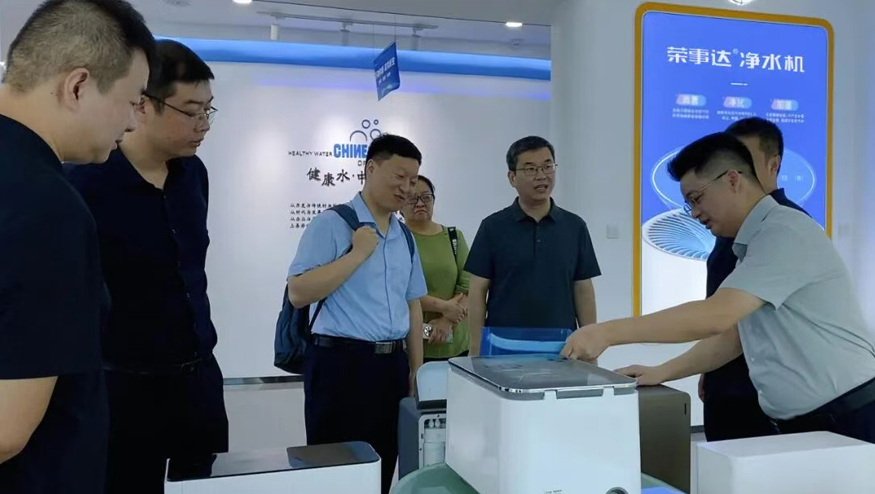 領(lǐng)導(dǎo)一行參觀了解集團(tuán)的全屋智慧凈水項(xiàng)目、社區(qū)智慧飲水項(xiàng)目以及校園直飲水項(xiàng)目等。