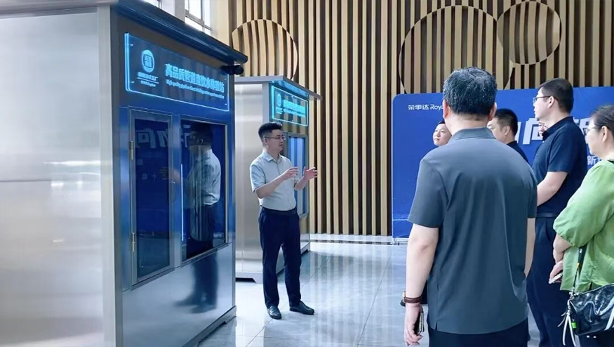 總經(jīng)理王悅生向領(lǐng)導(dǎo)一行介紹管道直飲水項(xiàng)目:該項(xiàng)目針對(duì)社區(qū)、學(xué)校、醫(yī)院、企事業(yè)單位及工廠等場(chǎng)景,提供定制化飲水模式,涵蓋社區(qū)智慧水站、校園智慧凈水屋、管道直飲水入戶/入棟解決方案,旨在為民眾打造便捷、高端、健康的飲水服務(wù)。