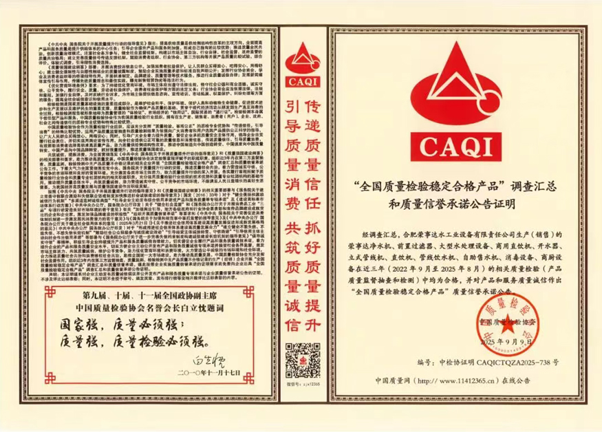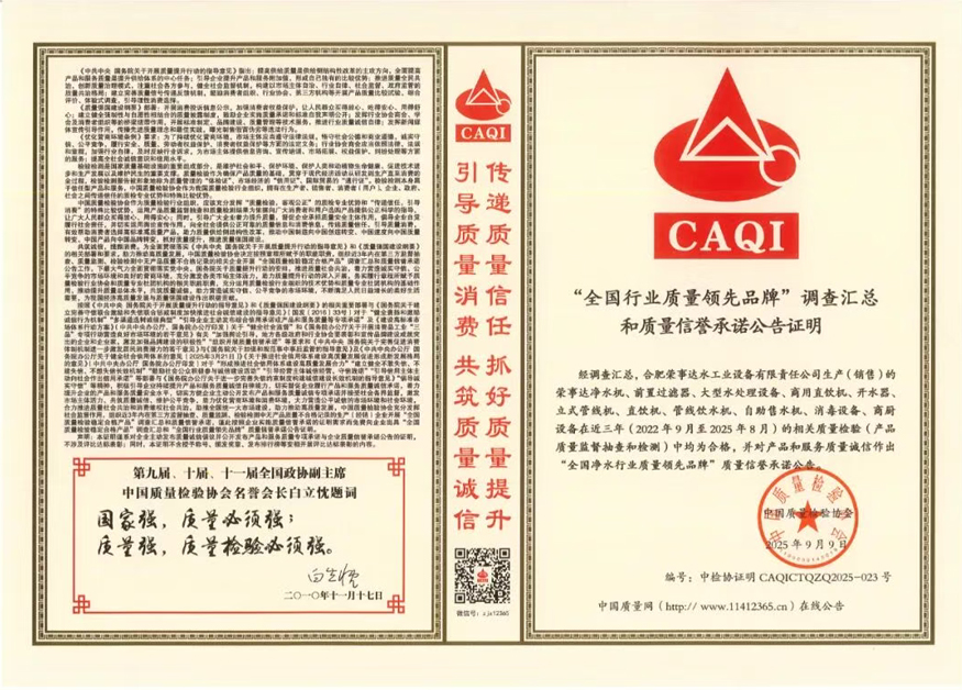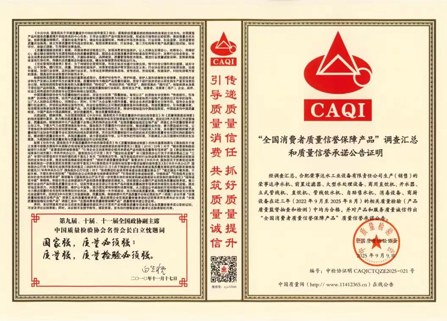 加強(qiáng)質(zhì)量支撐,共建質(zhì)量強(qiáng)國(guó)。在由中國(guó)質(zhì)量檢驗(yàn)協(xié)會(huì)牽頭組織的2025年全國(guó)“質(zhì)量月”企業(yè)質(zhì)量誠(chéng)信倡議專題活動(dòng)中,榮事達(dá)水工業(yè)公司憑借長(zhǎng)期以來(lái)對(duì)產(chǎn)品品質(zhì)的嚴(yán)苛堅(jiān)守與積極正向的社會(huì)形象,成功通過(guò)協(xié)會(huì)多維度審核與專家團(tuán)專業(yè)評(píng)定,最終一舉斬獲“全國(guó)凈水行業(yè)質(zhì)量領(lǐng)先品牌”“全國(guó)質(zhì)量誠(chéng)信先進(jìn)企業(yè)”“全國(guó)質(zhì)量檢驗(yàn)信譽(yù)保障產(chǎn)品”“全國(guó)質(zhì)量檢驗(yàn)穩(wěn)定合格產(chǎn)品”“全國(guó)消費(fèi)者質(zhì)量信譽(yù)保障產(chǎn)品”五項(xiàng)榮譽(yù)。