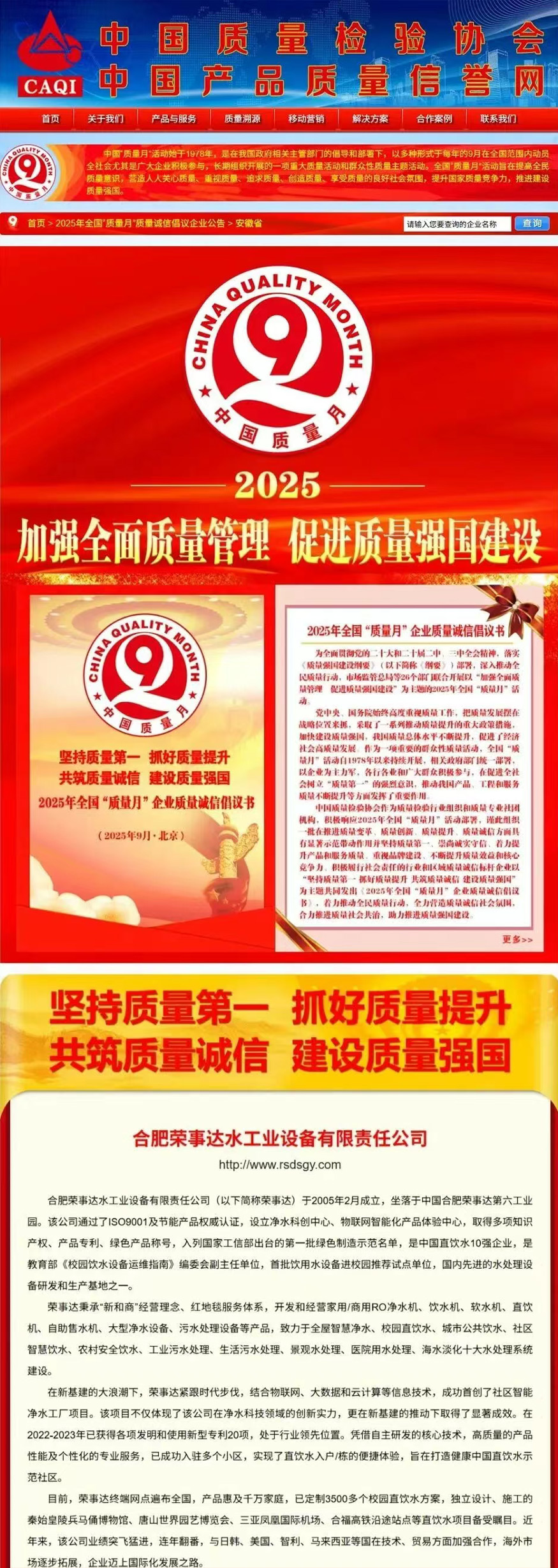 未來(lái),榮事達(dá)水工業(yè)將繼續(xù)秉持“質(zhì)量為先、誠(chéng)信為本”的理念,在凈水技術(shù)創(chuàng)新與產(chǎn)品品質(zhì)升級(jí)上持續(xù)發(fā)力,打造全場(chǎng)景、多領(lǐng)域的飲水解決方案,為推動(dòng)我國(guó)凈水行業(yè)高質(zhì)量發(fā)展與“質(zhì)量強(qiáng)國(guó)”建設(shè)貢獻(xiàn)更多力量。
